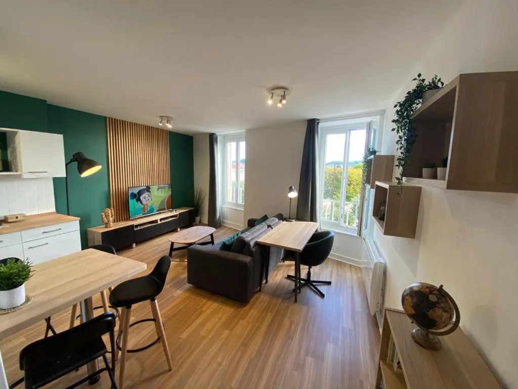 L'appartement du bonheur - Au Cœur des Volcans d'Auvergne sur la Route du Sud se může pochlubit výhledem na město a nabízí ubytování s terasou a balkonem.