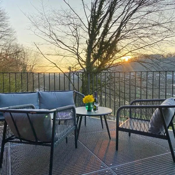 Durbuy Insolite - Panoramic Escape se nachází v destinaci Durbuy a poskytuje ubytování s bezplatným Wi-Fi a klimatizací, sezónní venkovní bazén a zahradu.