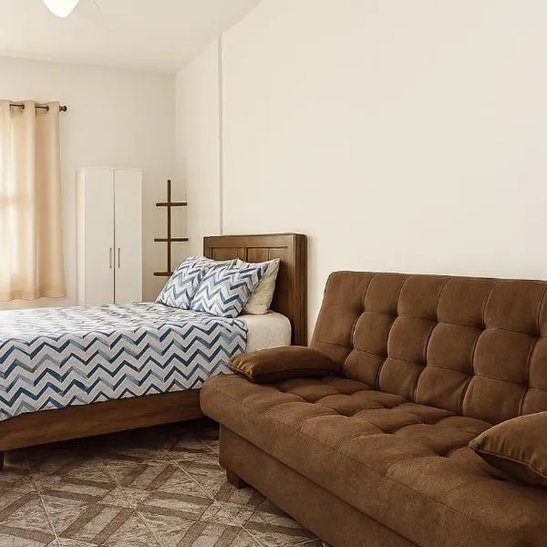 Skyblue Flat, que cuenta con vistas al jardín, ofrece alojamiento con piscina al aire libre y balcón a unos 2 min a pie de Brisamar Shopping.
