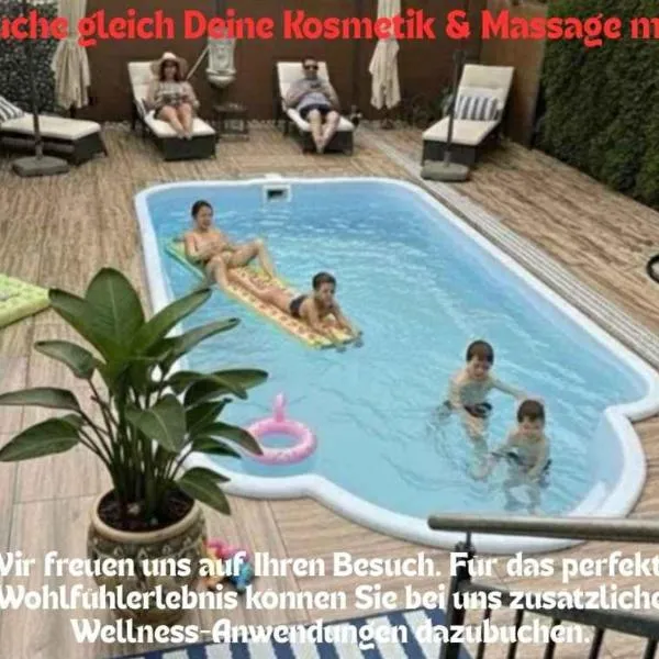 Urlaub mit Pool und Garten Ferienwohnung in Halberstadt bis 7 Pers, que cuenta con jardín, piscina al aire libre y vistas al jardín, se encuentra en Halberstadt.