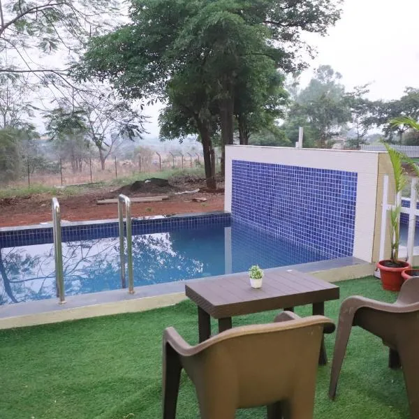 Aura Abode with private garden se nachází v destinaci Karjat a poskytuje venkovní bazén, zahradu, terasu a ubytování s bezplatným Wi-Fi a výhledem do zahrady.