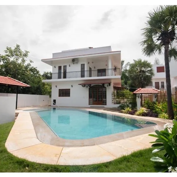 La Meadow Villa with Swimming Pool se nachází v destinaci Puduččéri a poskytuje celoročně otevřený venkovní bazén, bezplatné Wi-Fi a neplacené soukromé parkoviště pro hosty, kteří přijedou autem.