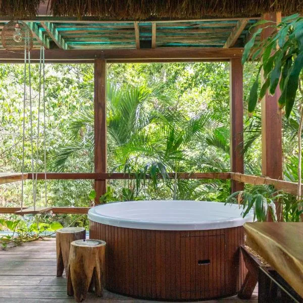 Jungle Tiny Home Retreat - Casa de Seda se nachází v destinaci Chemuyil v oblasti Quintana Roo a nabízí balkon a výhled do zahrady.
