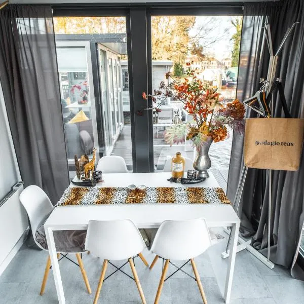LODGE, een super knus tiny house, nabij vaarwater en haven! se nachází v destinaci Belt-Schutsloot a poskytuje bezplatné Wi-Fi, zahradu s terasou a výhled do zahrady.