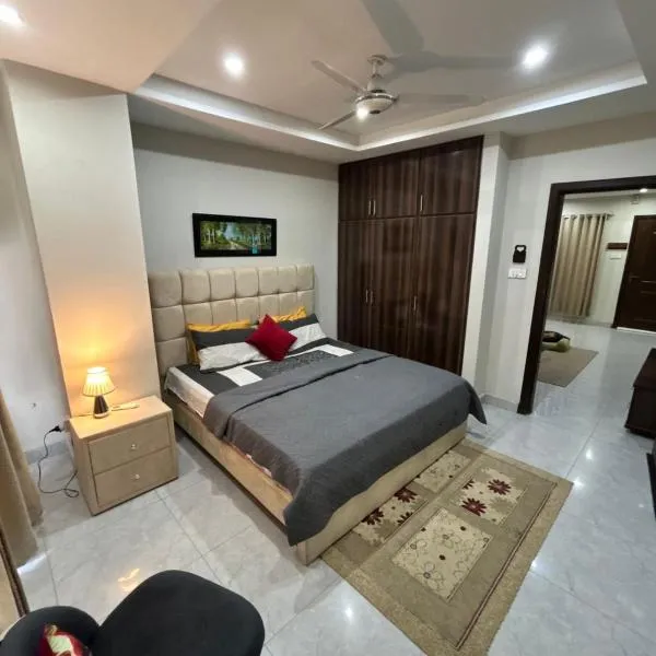 Two Bed Luxury Apartment se nachází v destinaci Islámábád a může se pochlubit terasou. Faisalova mešita se nachází jen 33 km daleko a Taxila Museum 9,1 km.