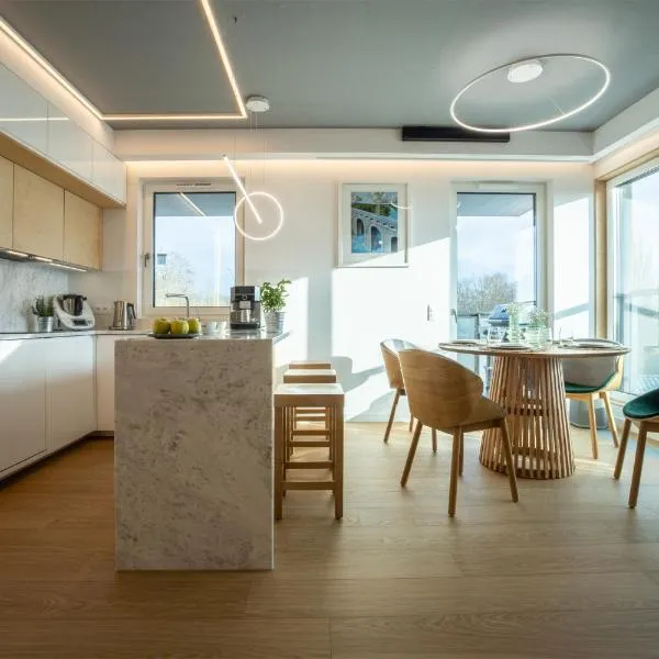 Apartament nad Zalewem se může pochlubit výhledem na jezero a poskytuje ubytování s balkonem a kávovarem. Staroměstské náměstí se nachází přibližně 35 km odtud.