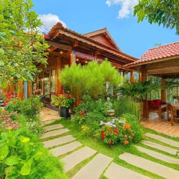 Nhà Đậu Homestay Măng Đen se encuentra en Kon Von Kla y ofrece alojamiento con wifi gratis, jardín con terraza y vistas al jardín.