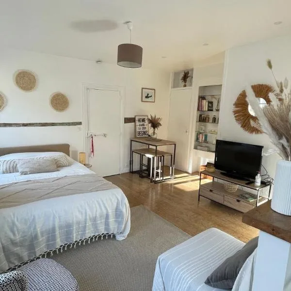 Situated just 22 km from Palace of Versailles, Gîte Au Bout du Verger features accommodation in Les Molières with access to a garden, a shared lounge, as well as a shared kitchen.