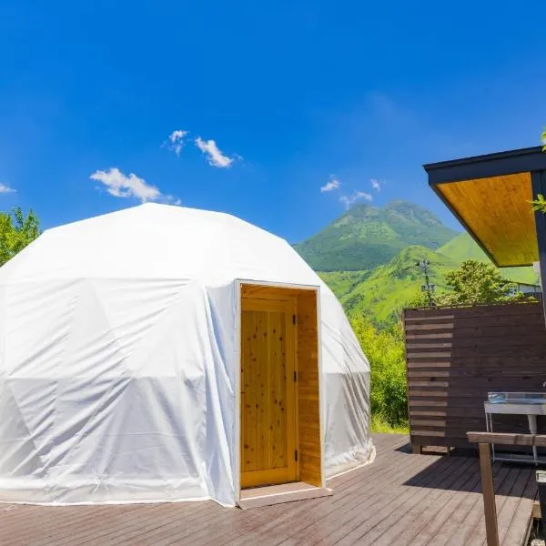 由布院温泉グランピング 風の響き se nachází v destinaci Jufu v oblasti Oita a nabízí bezplatné Wi-Fi, neplacené soukromé parkoviště a volný vstup do termální lázně.