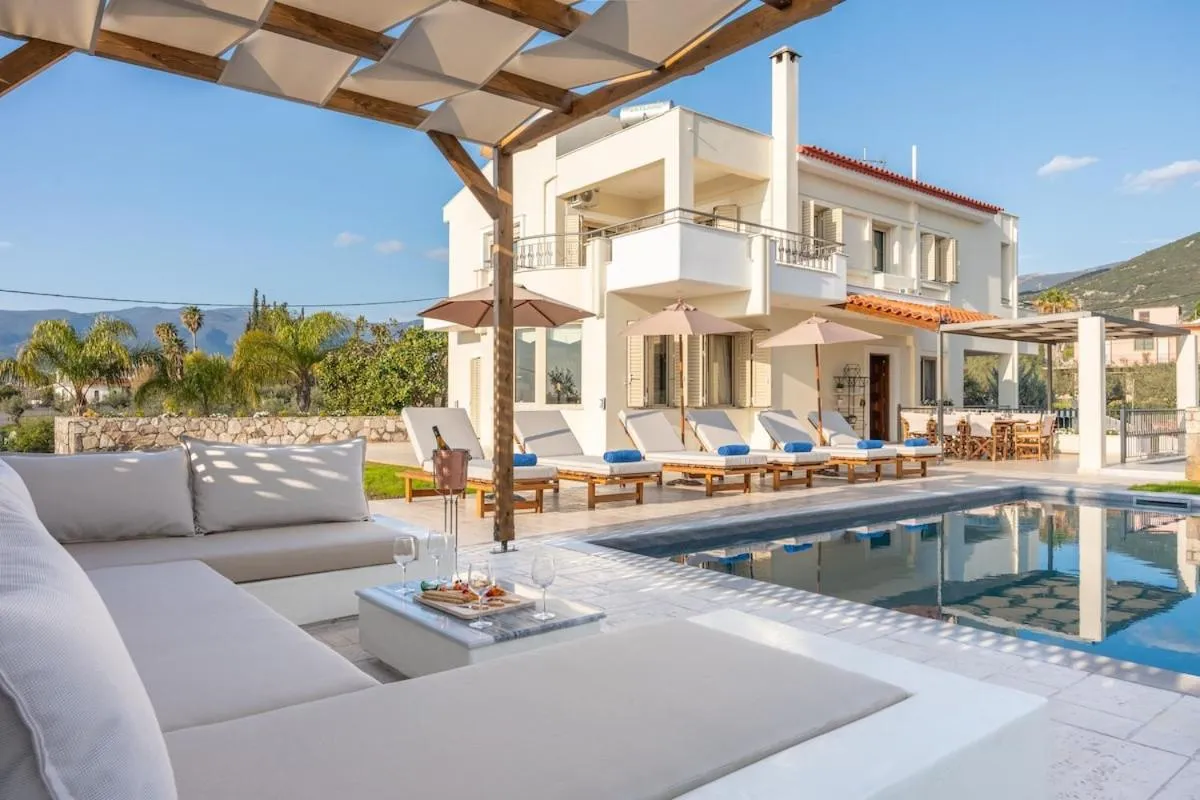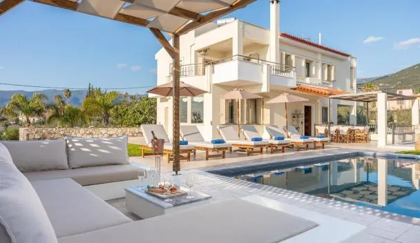 Grande Luxury Villa Kalamata - 2 se nachází v destinaci Kalamata a nabízí zahradu, soukromou pláž, tenisový kurt a ubytování s bezplatným Wi-Fi a výhledem na moře.