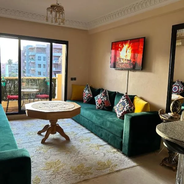 Appartement coup de coeur, que cuenta con piscina de temporada al aire libre, salón de uso común y terraza, ofrece alojamiento en Marrakech con wifi gratis y vistas al jardín.