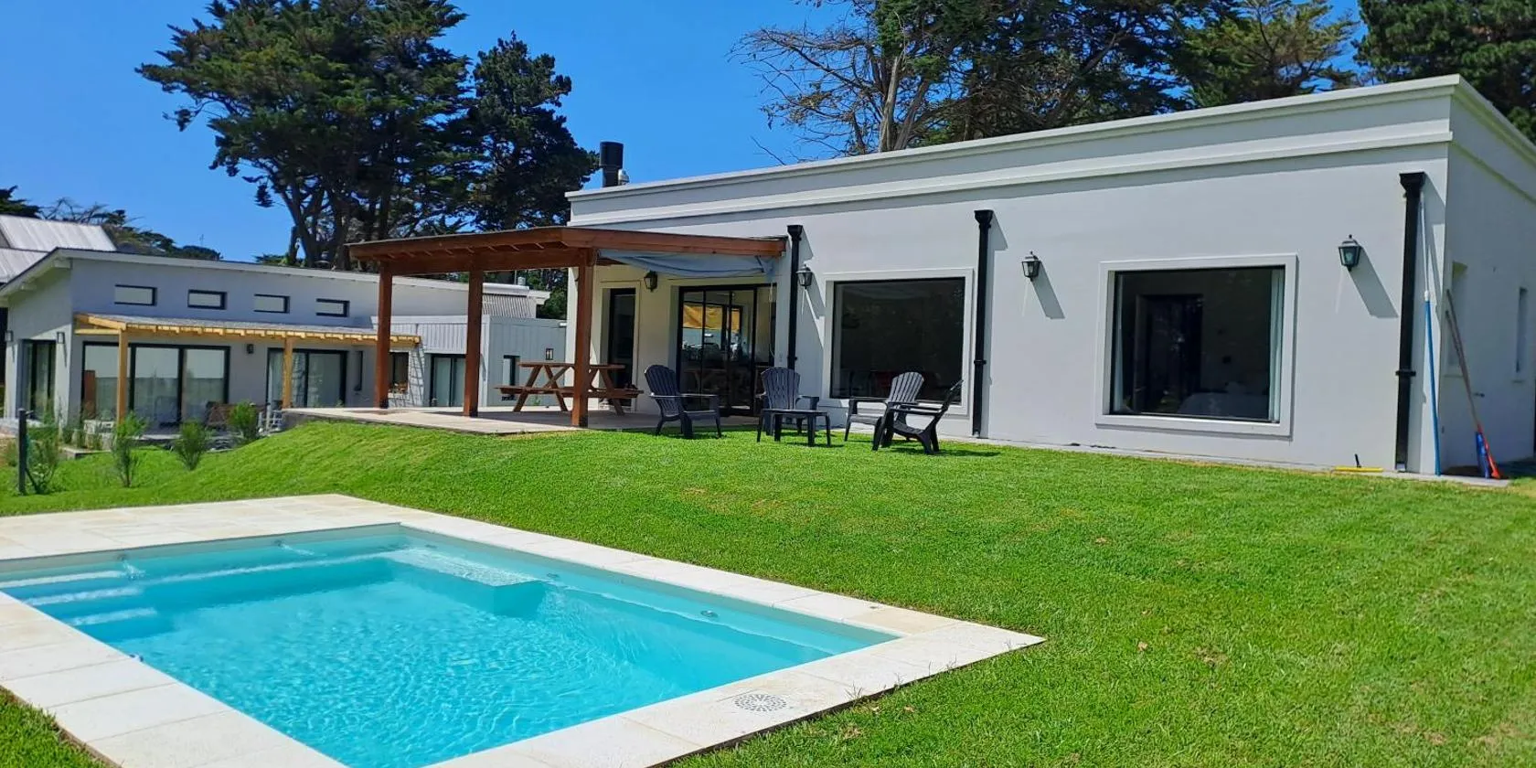 • IZ chapa - Casa 1 - Casa en Chapa a estrenar a cuatro cuadras de Luna Roja - Hola Sur se nachází v destinaci Chapadmalal a nabízí zahradu, venkovní bazén a výhled do zahrady.
