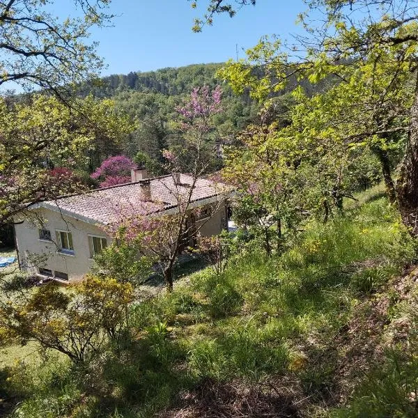 Les Curies - ludogîte, gîte et moulin avec piscine, que cuenta con piscina de temporada al aire libre y jardín, dispone de alojamiento en Aujols con wifi gratis y vistas al jardín.