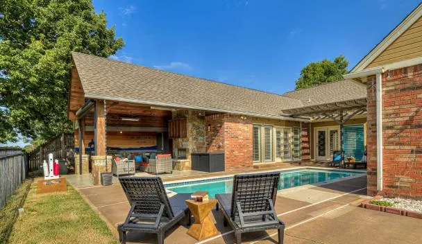 OKC Casita - Newly Remodeled, Modern 2 BR home - Family and pet friendly Plus Hot tub se může pochlubit výhledem do zahrady a poskytuje ubytování s zahradou a patiem.