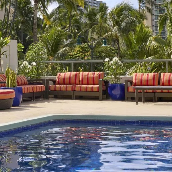 Tento moderní hotel v Honolulu leží pouhých 10 minut pěšky od plážového parku Fort Derussy. Nabízí venkovní bazén a saunu. Jeho apartmá jsou vybavená TV s plochou obrazovkou a bezplatným Wi-Fi.