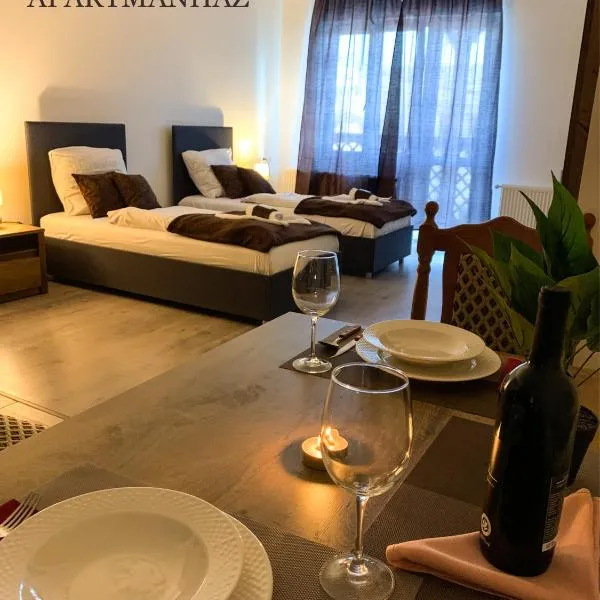 Aquarius Apartments se nachází v destinaci Miskolctapolca a poskytuje bezplatné Wi-Fi, zahradu, sdílený lounge a terasu. Na místě je k dispozici soukromé parkoviště.