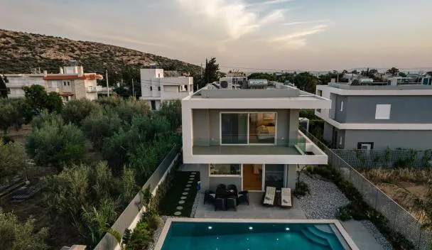 Pool Villa Lagonisi 5min from Beach se nachází v destinaci Koropíon a poskytuje venkovní bazén, zahradu, terasu a ubytování s bezplatným Wi-Fi a výhledem na bazén.