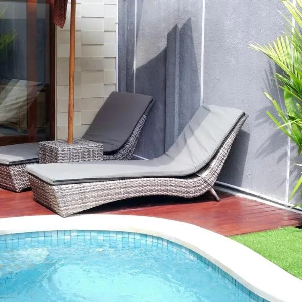 Private Pool Villas Kuta Bali se nachází ve čtvrti Raya Kuta v Kutě a nabízí venkovní bazén, zahradu, terasu a bar. Pláž Kuta Beach se nachází jen 1,3 km odtud.