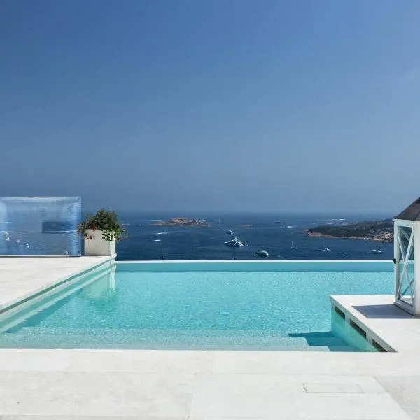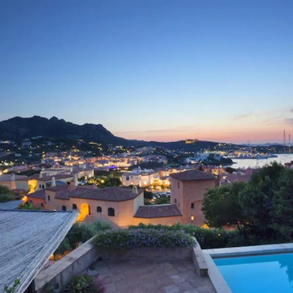 Villa Dea overlooking the harbor of Porto Cervo, que cuenta con piscina al aire libre, jardín y terraza, ofrece alojamiento en Porto Cervo con wifi gratis y vistas al mar.